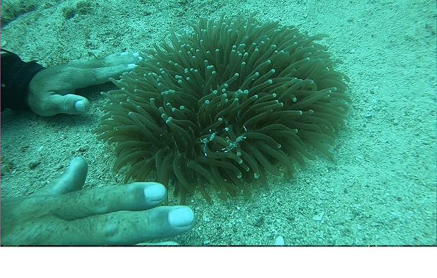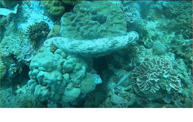 老师MARK COOSSY说这个是他们的SWIMMING POOL。然后再跟大家去潜点由老师拖着我的Gear试潜(因为我经常在快撞上珊瑚时候紧张放太多气到BCD里面浮上水面.)这段期间我都因为游泳及浮力控制不好还有晕船啦失控上浮太快啦。一直就在流鼻血啦呕吐啦头疼啦中度过。呕着呕着就习惯了,船上呕吐完吃点东西恢复,水下呕吐完就洗洗呼吸管LOR,自从可以水下呕完后,觉得也没有什么大不了的。爱妮岛的常规潜点包括SMALL LAGOON另外一边底下有许多漂亮的珊瑚,有一大群小黄鱼是常见,还有多样的种类。NAT NAT就是有一大群大白鱼。还有海龟。同去的小伙伴见到魔鬼鱼,我们没有见到。MARK Coossy帮我拍了buble fish,还有一些他见到就冲过去拍的,可能很少见呱。对于我来说都是第一次见,分不出哪些鱼是很罕见的。