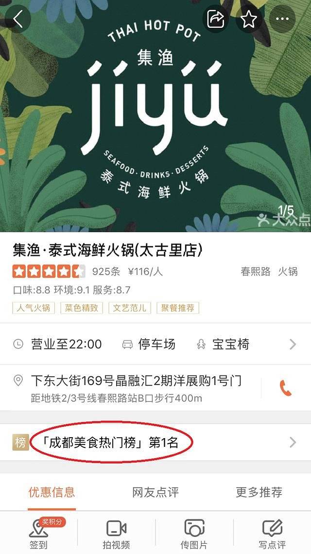 就是泰式海鲜火锅"集渔"啦!初到成都的小编肯定要大众点评一下的,看到成都排行第一的火锅居然是一家非传统火锅的泰式火锅,真的超级感兴趣,于是立马放下行李就来到太古里的这家集渔啦!