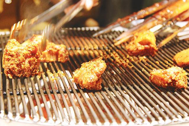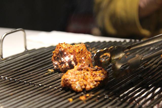 不得不说服务很到位,因为是 大竹 签串着的猪肉,我也不太会烤,我们一边吃服务员一边帮我们烤,火候和烤的时间掌握的很好,猪肉外焦里嫩,不愧是专业烤肉,如果觉得有些油腻可以夹生菜,再弄一点蘸料,幸福感十足啊。