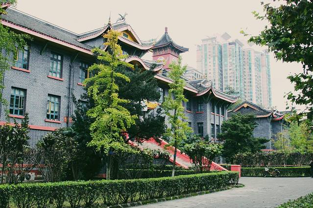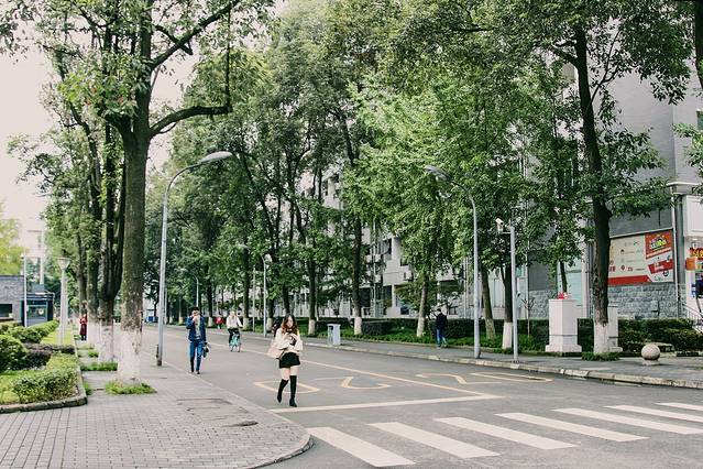 川大的教学楼很有特点,主要都是以灰青色的石砖搭建而成,窗户也是绿色为主,别有一番古典的韵味。一眼望去满眼绿意,莘莘学子在这样的环境中,享受着大自然的恩赐。