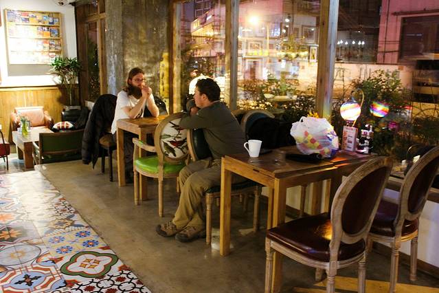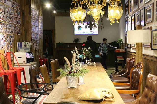 前台有移动充电宝,金属架上摆放了很多各个国家的小酒瓶作为装饰,有一种 摩洛哥 式的异国风情,清新简约,在这里吃饭有木有仿佛置身小森林的感觉,就爱它的装修,没理由。