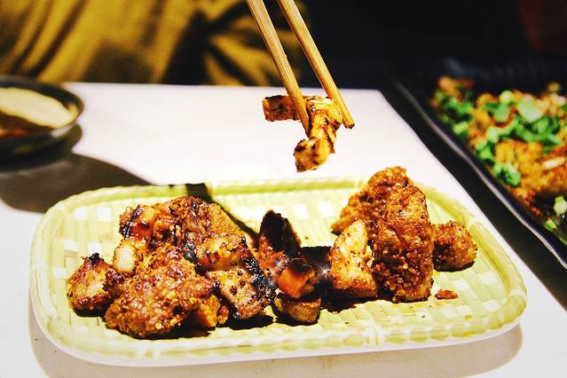 小时候经常在 云南 能够吃到,但是有区别的是 云南 的是用铁网来烤的,这里的是直接现成的端上来,重要的是上面放有我爱吃的“折耳根”,也就是鱼腥草。咬破豆腐皮吃到里面的包浆,那种感觉简直停不下来,去的盆友一定要点,感觉不吃后悔系列。