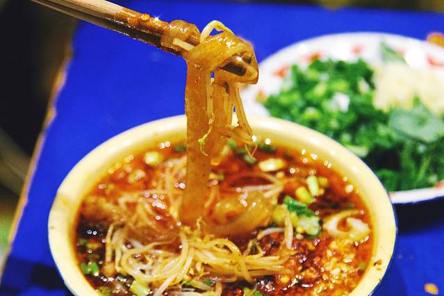 来 成都 必吃的一家串串,其实就是麻辣烫,就是马路边啦!招牌油碟干辣椒+黄豆面+花生碎+一勺汤油,简直perfect!一定要点招牌菜千层肚+粉条,真的是鄙人吃过最好吃的粉条了,没有之一,555