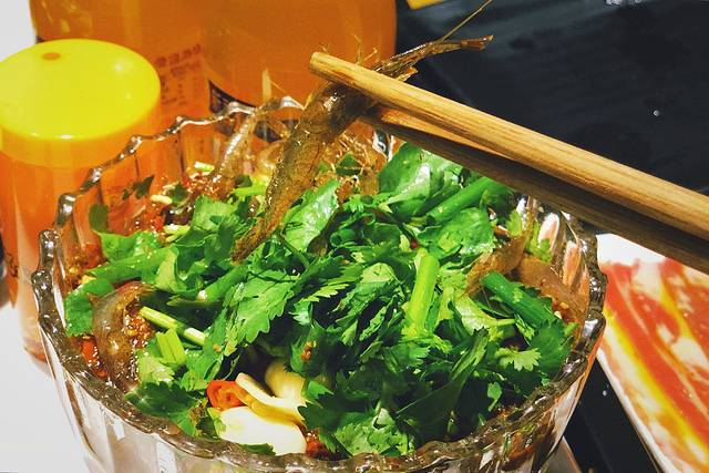 强烈推荐,酸辣味道,主要是小米辣和醋搅拌的,服务员说盖五分钟再吃,但是手贱党忍不住打开小虾四溅,虾体虽小但很新鲜,入味非常棒,超级符合我的口味。