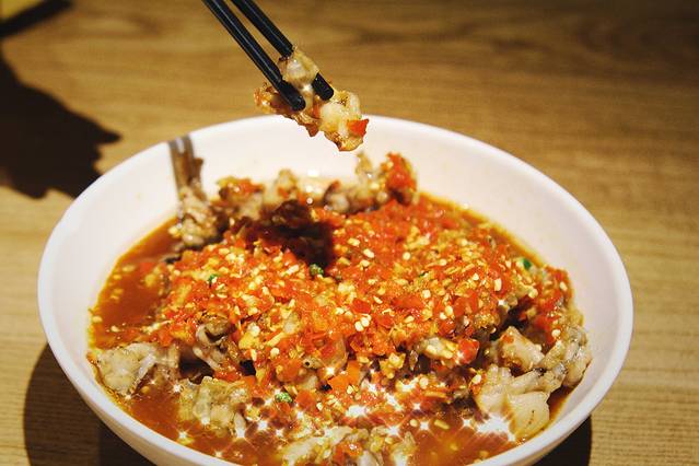 这是我最喜欢的一道菜,如果你不是很能吃辣,那么这道菜无疑是你来这里必点的。去壳的串虾个大肉满,热油淋过表面酥香,虽然周围看上去都是辣椒油,但是真的没有特别辣,我一人可以吃两份,并且端上来的虾是已经剥好的,适合我这种懒人。