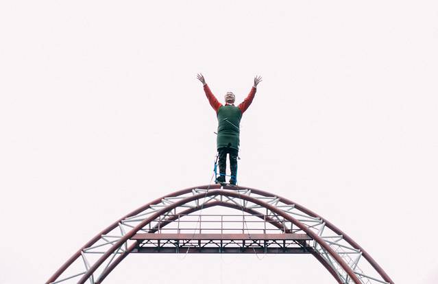 同行的一位伙伴上去体验了一下,其实蹦极最害怕的并不是跳下来的那一瞬间,而是站在上面往下看的瞬间。