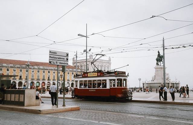 里斯本 电车也成为了城市最亮丽、最古老的的一道风景线。电车的起始站在华人街附近的一个广场,那里停靠着各式各样的电车。