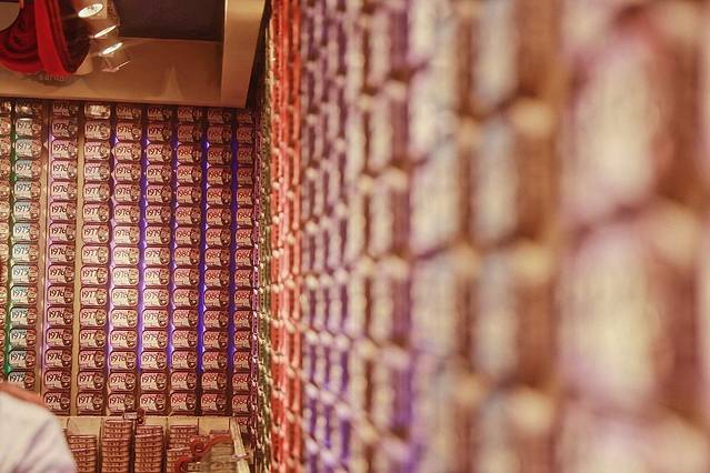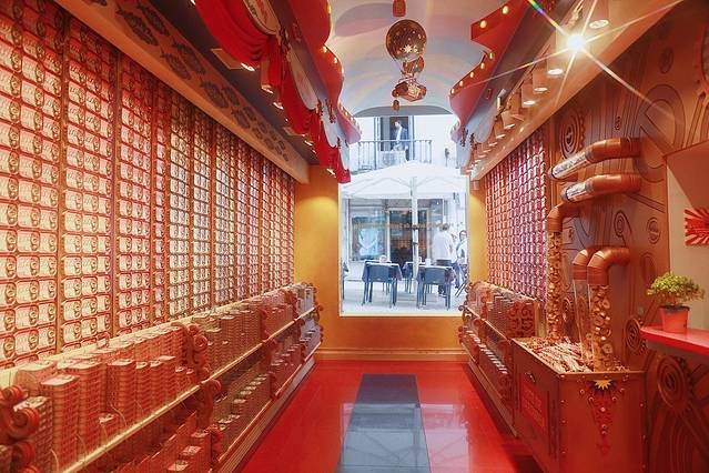 这家店应该是卖鱼罐头的店,包装上不同年份不同颜色的鱼罐头铺满了整个墙面。可以选择自己出生年份的罐头和到 达日 期的罐头会很有意义。