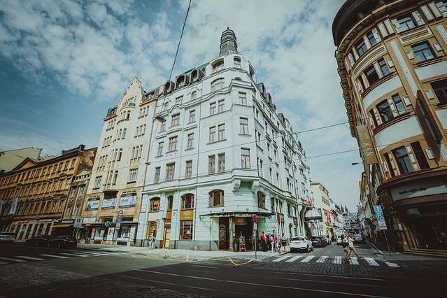 △ 这个建筑就是我们这次入住的酒店, 布拉格 新艺术风格宫殿酒店,在 布拉格 的日子里一直住在这里,折合人民币好像是1200元一晚,不含早餐。步行去老城广场也就几分钟,旁边就是商业步行街