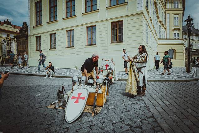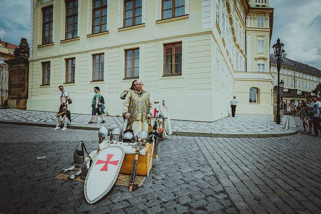 △ 布拉格 城堡外,一些Cosplay的摊位在营业,可以帮你装扮成中世纪十字军骑士,或者王公、领主。