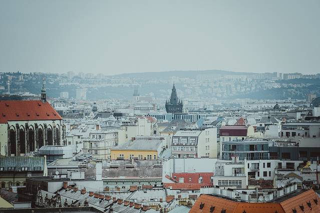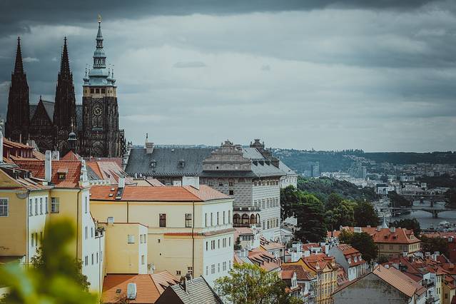 △ 这个取景位置是新市政厅,一个比较少人去的景点。同样也可以俯瞰大部分城市。上图远处就是 布拉格 城堡。