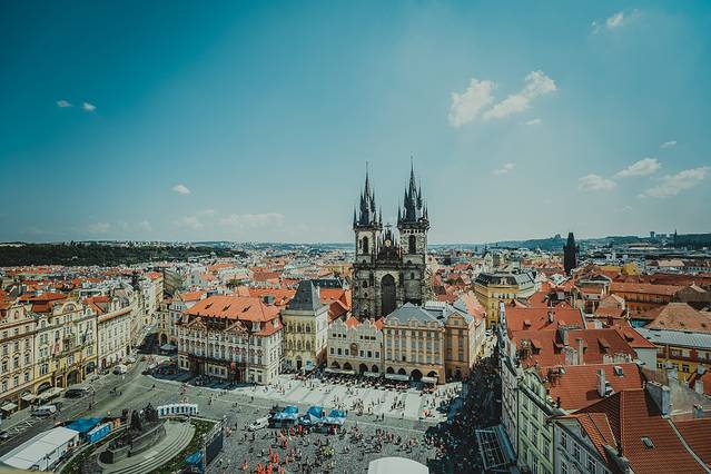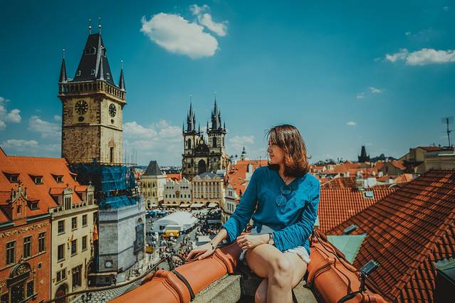 ▽ 这个拍摄角度算是网红位置吧,是在老市政厅塔楼上,可以欣赏到整个 布拉格 。当时买票买的联票,当天早晚通用,还可以去新市政厅。
