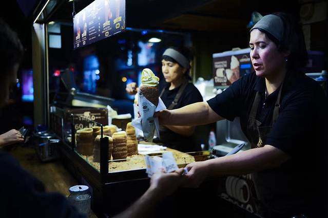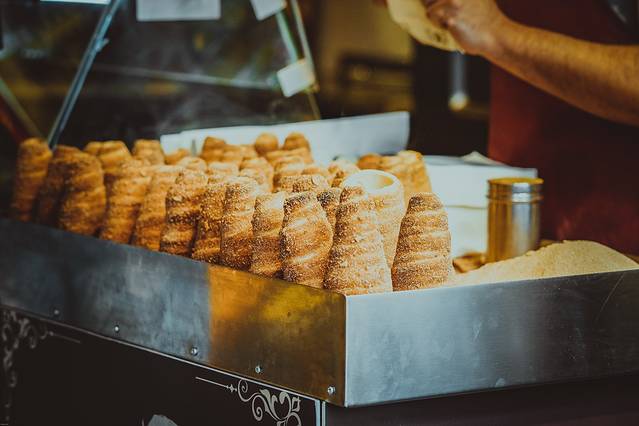 △ 不得不说的烤面包卷, 布拉格 特色小吃,也就是一个空心烤面包卷,面上撒了一些霜糖,然后在里面刻意装一些奶油、冰激凌、果酱等,必吃!