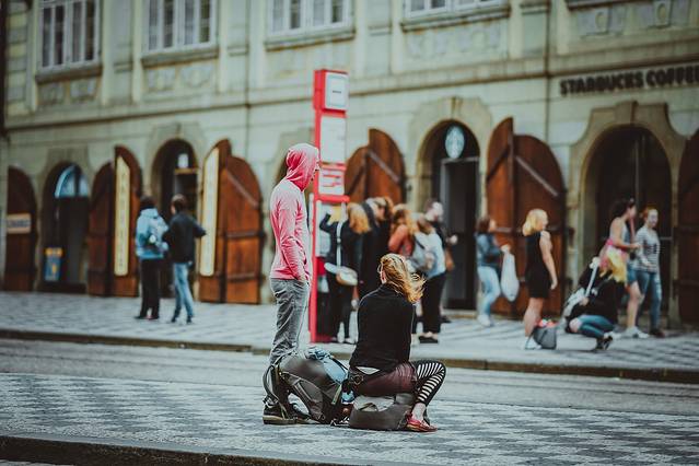 → 与国内的街头卖艺人不同,国内的卖艺人更多的是宣扬他的凄惨,博取路人的同情。而国外的卖艺人,往往穿戴整齐,多是在展示他的才华,更希望你能为他的表演鼓掌。