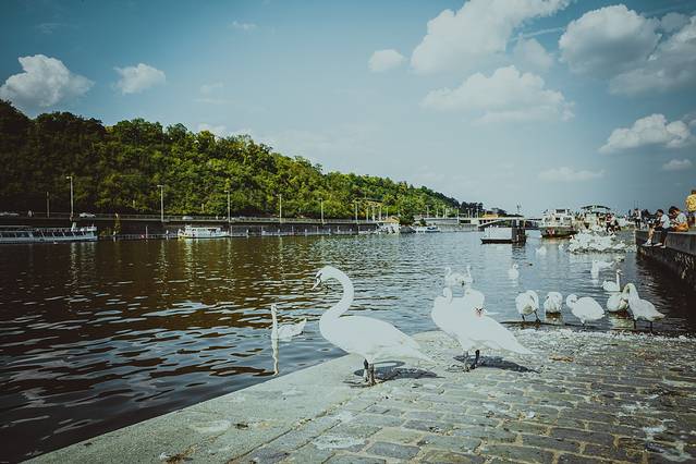△ 从城堡区出来,沿着河边,有一个公园,山顶大致能看到一些河景,岸边有一些天鹅,怡然自得。如果有无人机的朋友,建议在这个公园山顶放飞一下,可以拍摄到老城区与河上的桥构成的画面,很美。