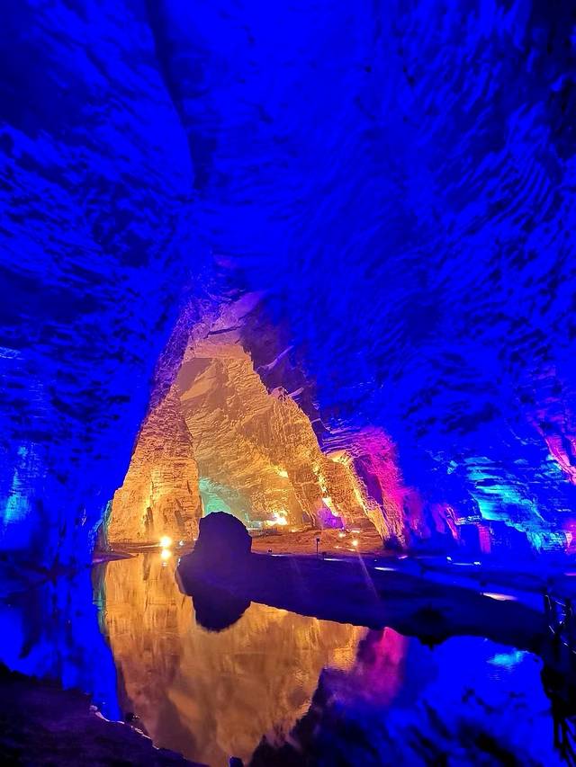 买恩施火车站坐车到利川火车站的票,利川火车站出门右手就有到腾龙洞的车,5元一位,直接到景区门口。电瓶车没必要坐,到激光秀那就没有了,但激光秀那里也就算刚进腾龙洞。这个激光秀表演非常壮观,全程看完后,等旅游团全走后的,走进看,发现激光秀右手边有条路可以走,顺路走下去,腾龙洞的经典景色才一一呈现,里面很大,有路标,有些地方有水,很滑,建议把所有景点都走到,基本都是平地,除了滑点,不用带登山杖,特别漂亮的景区。出来后,问了门口的保安,在公交车站等车回利川火车站,等半天没车,有个黑车司机喊我们,30过去,没有犹豫,下车跑着去购买了2点多回去的火车,不然就要等到4点才能有车了。