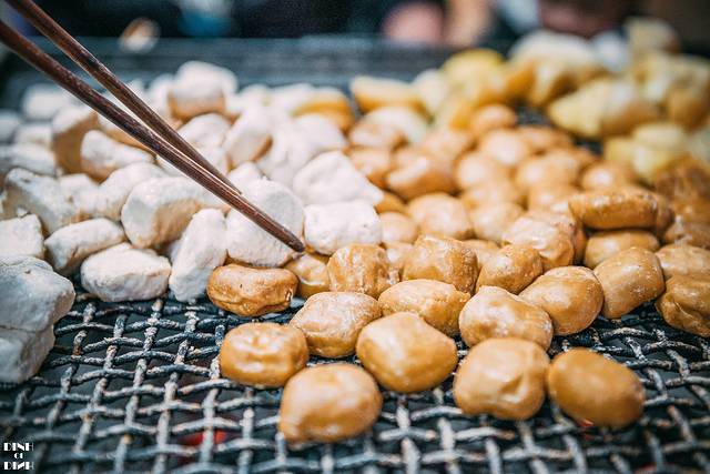 豆腐在烤制的过程中水分蒸发,慢慢的成蜂窝状,摊主会给蘸水,有干的和湿的,