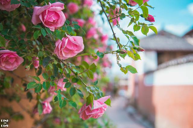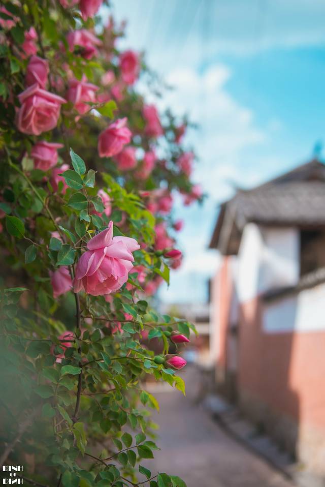 在建水主街道的小岔路上,往西门方向,门口有一大片郁郁葱葱的多色三角梅。