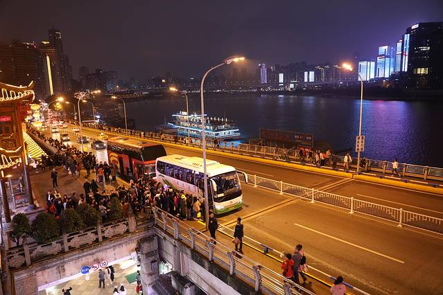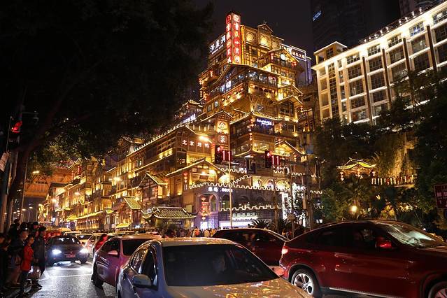 刚下飞机有点累,给我的小伙伴打了一个电话他还在动车上挣扎,刚想睡一会结果又忙了一会工作,时间就一点一点的过去了,等他到了也到了晚餐的时间,我们商量了一下先去洪崖洞看看然后再去吃火锅,看看那个千与千寻的场景,酒店离洪崖洞很近,我们俩傻呼呼的还打了个的,其实步行就2条街就到了,到了洪崖洞发现人是真的多,让我感觉中国人都这么闲的吗?不管什么时间什么天气都会有这么多人来旅游。