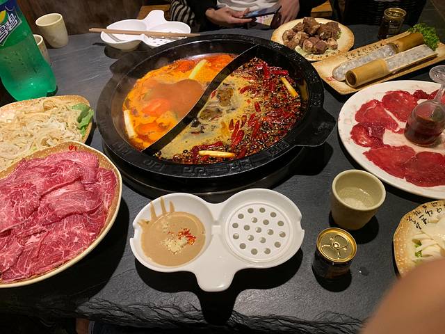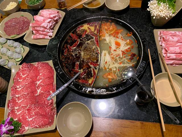 逛完洪崖洞我们就去吃火锅了,体验一下重庆的正宗火锅,又麻又辣,我们俩就像一个路痴一样按照谷歌地图都走不明白,不过还是我找到了地方,洪崖洞晚上附近那些网红火锅和附近好评的火锅根本排不上的,要去游玩的人注意一下, 用美团查了附近的一家火锅店,人气比较高的,到了门口我都没进去转身就走了,因为排队的人已经在外面坐了一排了,我朋友还傻呼呼的去问一下叫个号,至少要等2小时以后,我们俩就走了走了几条街找了一家人也很多的吃了,味道还不错,服务员小哥很热情,还特意问我们来旅游的建议吃微辣,微辣就已经受不了了。
