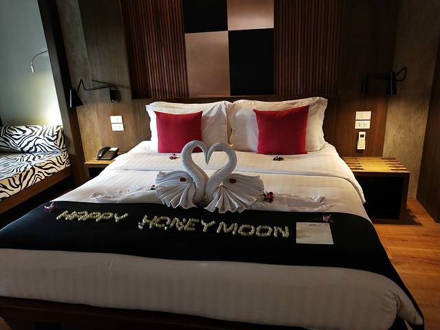 27号凌晨1点半到机场,办理登机牌、托运、安检、出海关,到了候机厅已经快4点了,5点35准时起飞,泰航直达苏梅花园机场,乘务人员会中文,飞机餐不错,比去年的云南的好多了,小朋友一上飞机就睡,错过了心心念念的飞机餐。到达苏梅机场是当地时间8点半,下飞机前插好了在淘宝上花19.9的HAPPY卡,买了两张,方便如果妈妈不想出门和我联系方便,事实证明根本不需要,在酒店有WIFI,可以发微信,在泰国基本上不用打电话。入海关很简单、快速,旅行社提前填好了出入境卡,入境处写明“不收小费”,也没有抽查随身现金。说到这,不得不吐槽下旅行社工作人员,本来我也是第一次出国不懂,他跟我说入境的时候人均要携带4000元人民币的等值泰铢,我走之前兑换了4万泰铢带上,明知道根本用不完,为了应付抽查也没办法,直到出发前两天,发给我的通知书上居然写着“4000元人民币或等值外币”。在苏梅5天,吃饭、购物、玩也花不完,最后还剩下3万泰铢,带回成都兑换1万亏100人民币,同样遭遇的还有同住亭阁的另一家人,他走时在苏梅机场兑换的,1万亏200。出了机场有人负责接机,等了差不多30多分钟才齐,把我们一一送到酒店。