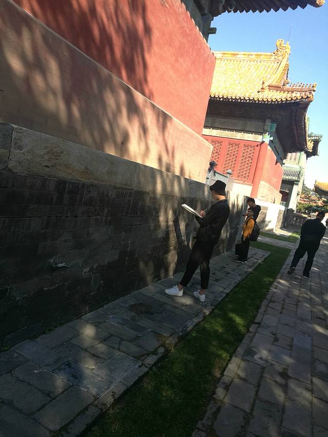 在故宫内速写的年轻人
