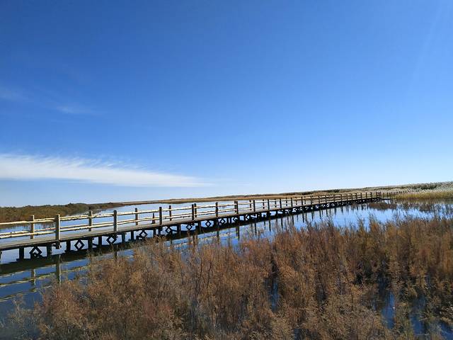 早晨凭指纹打卡入园,去一道桥和二道桥没有景区车,直接顺着栈道走,栈道两旁都是胡杨树,从一道桥直接能走到二道桥,边走边玩大约我们用了3个小时。景区没有餐厅、卫生间也很少,女士去个卫生间要排大队,很不方便,要自己准备食品。中午在二道桥出口的乘车点休息、午餐。