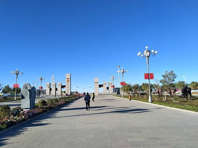 从神树景区到策克口岸约50分钟,策克口岸是内蒙古第三大口岸,是阿拉善盟对外开放的唯一国际通道。门票35元,口岸外边都是商铺、饭店,购物吃饭非常方便。晚餐在策克口岸解决,然后回到额济纳宾馆。