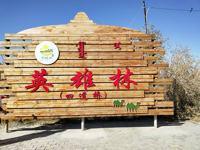 二道桥出口乘车点有两个,一个是到四道桥,一个是到七、八道桥,没有返回景区大门口的车。我们乘车到四道桥英雄林。四道桥景区门口有许多小摊贩,有吃的和工艺品可供选择。四道桥英雄林的胡杨比较旺盛,正是欣赏胡杨林的最佳时间。