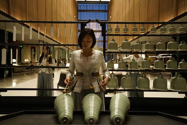 那么怎么样的酒店能称为之为好的酒店,笔者认为一家好的酒店售卖的应该是感觉和意境,贵在价值而非价格。初见涵碧楼,一派岁月静好的模样,走过大堂步梯,整个人就被会撩到了,一排青瓷乐器展现在眼前,与南京博物院里的编钟有异曲同工之妙,青瓷瓯乐清脆悦耳,闭上双眼聆听一曲《东方红》,好听到让整个耳朵都怀孕,民族的才是世界的,这正是来自东方的,属于中国的好声音。
