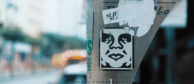 ▲电话亭上的OBEY贴纸。