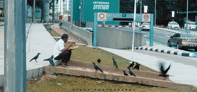 ▲他和乌鸦分享他的早餐。