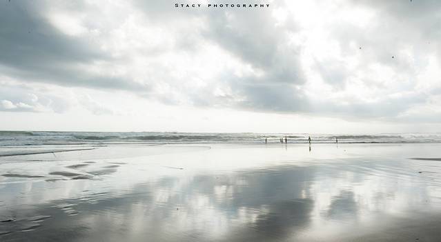 ▲水很是清澈,海浪漫在沙滩上,将云与天倒映,予人仿佛置身天空之镜的错觉。