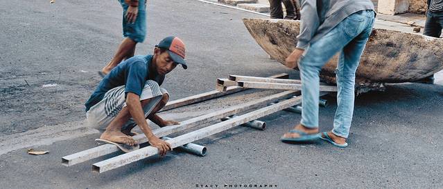▲从 蓝梦岛 载些建筑材料回岛的岛民。