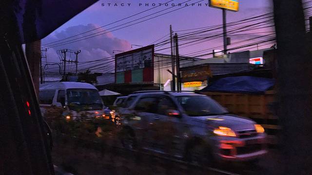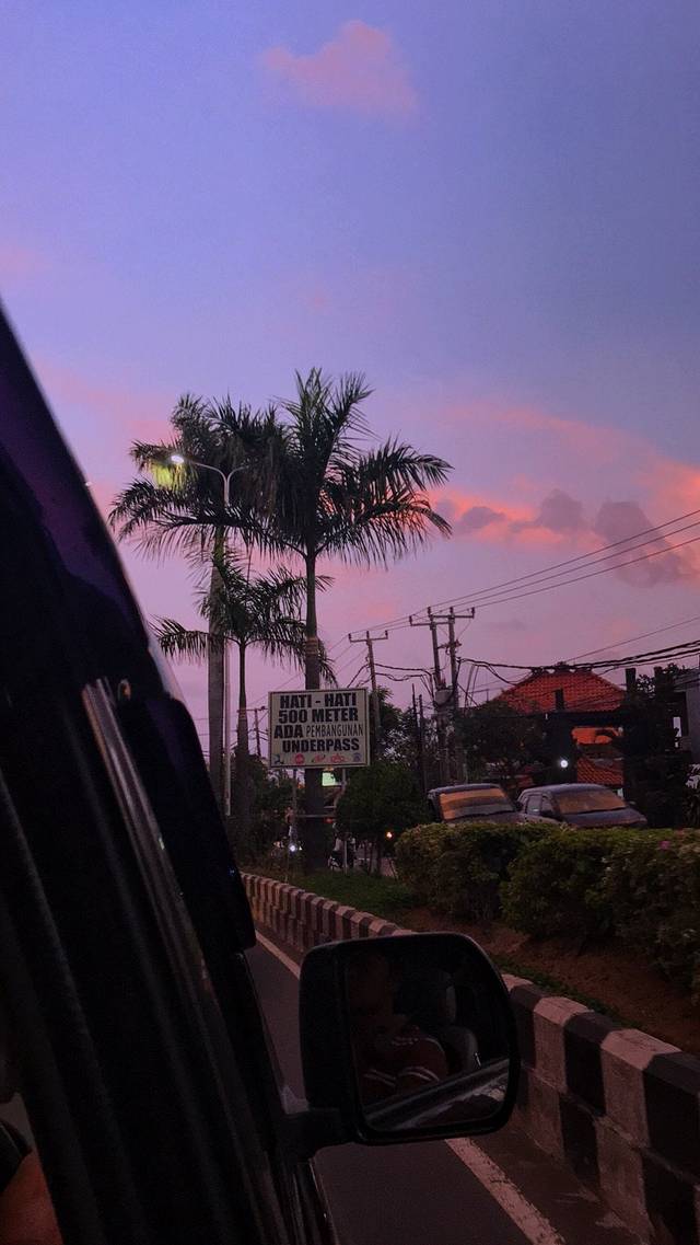 ▲日暮时分驱车在 金巴兰 的街头。整个世界都是粉紫色的。
