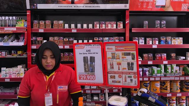 ▲便利店的收银员。