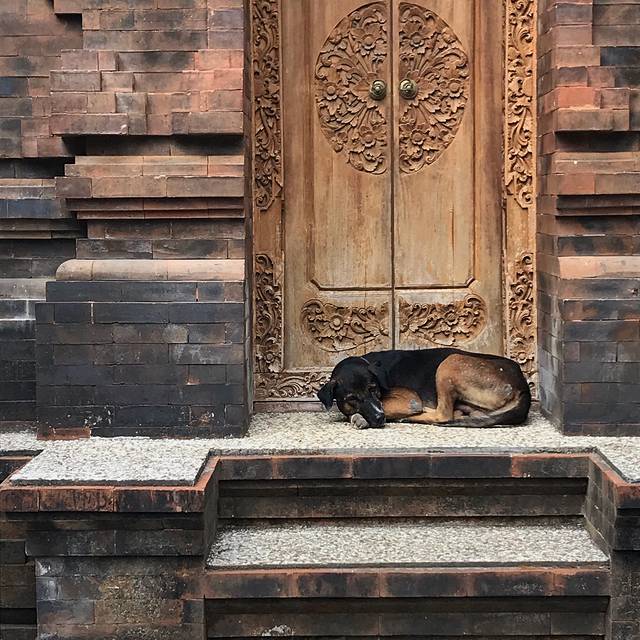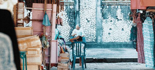 乌布市场的确热闹非凡,印尼古式建筑交错其间,每一栋都建的很有韵味。市场内很大,由一条条相似又各有特色的街巷组成。街边有各色店铺,音乐酒吧更是不在少数。人行道很窄,路上往往人头攒动。我们的住处在一条深巷的拐角处,闹中取静,安逸得很。店主更是潇洒,何时付款、如何登记,全都由房客自己决定。