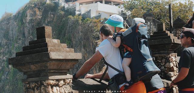 ▲情人崖景区抓拍到的一刻。孩子趴在爸爸身上看世界。