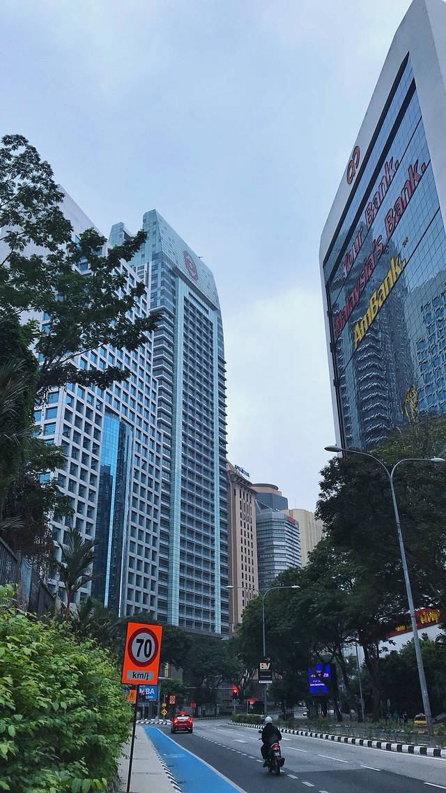 吉隆坡 的高楼都充满了美感,每一栋楼都别具一格,让我坚信他们的建筑师都是美学上的高造诣者。道路周边的停车区是干净的蓝色,道路是艺术的延伸。