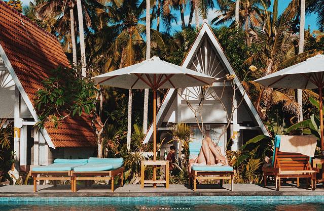 后来他主动say hi,我们开始了长达两小时的交流。他来自加州,着很简单的t恤短裤背包球鞋,我以为是去 巴厘岛 体验生活的大学生;问完才知道他在 巴厘岛 有份物流方面的工作,这次去要呆五个月,上一次来也呆了五个月。库塔、乌布、 蓝梦岛 、 龙目岛 几个地方都会呆一段时间,最后赶回家过圣诞。问他有没有 巴厘岛 美食推荐,他说 巴厘岛 本地很多炸薯条特别好吃,嘎!薯条简直成了我后面几天旅途的精神寄托。