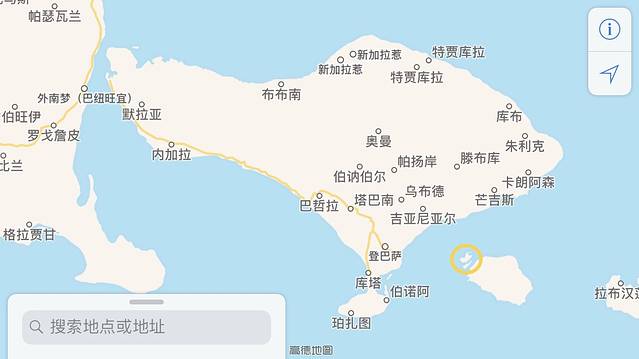 ▲图中最大的岛为 巴厘岛 ,我用黄色圆圈圈住的是 蓝梦岛 和金银岛。