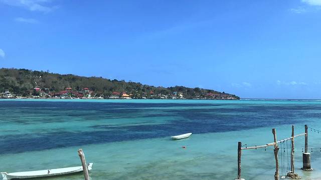 海是孔雀蓝的海,清澈见底,到距海岸线更远的海 中方 与深蓝色交汇,好看甚。