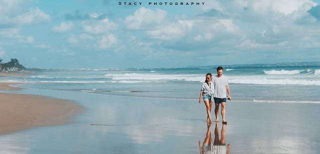 ▲库塔海滩边漫步的情侣。