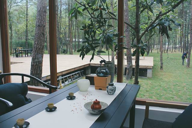 慢慢穿过郁郁葱葱的松树林,小隐也就出现在眼前了。简单的禅意风格,宽大的木质露台,让人急匆匆赶来的心,一下子安静了下来。