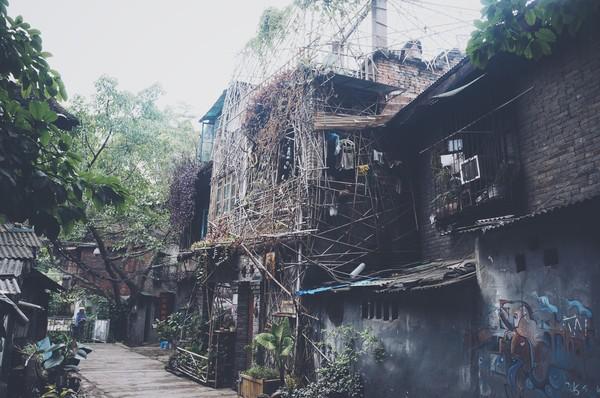 重庆 南岸区临近南滨路,紧靠东水门长江大桥的一个斜坡上的街区——下浩社区。