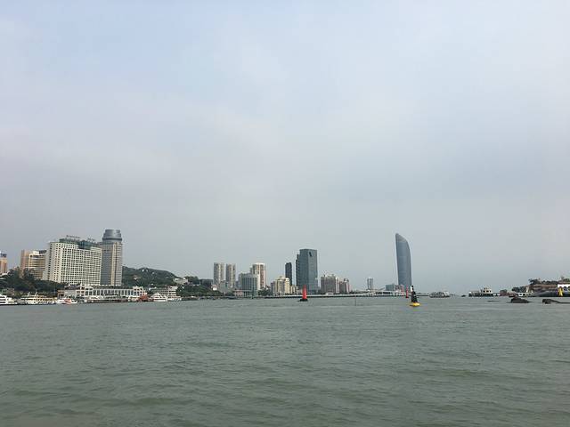 我们俩人分别在网红店沈家肠粉和林氏鱼丸门前排队,赶潮流买了一份肠粉和鱼丸尝尝,味道确实不错,难怪人们追逐。站在路边吃完东西继续往前走,看到一家叫老宅的餐馆就走了进去,他们讲自己是闽南人,做的饭菜更接近当地人的口味 。点了一份白灼鱿鱼、土笋冻、沙茶面配以金门高粱酒,味道比较清淡确实不错。吃饱喝足几分钟就走到环岛路,坐在椅子上,吹着海风、看着离岛游客伴随酒吧歌手弹唱的<彩虹>中“你要离开 我知道很简单”从面前走过,海对面中山路灯火辉煌霓虹闪烁,真希望时光驻足不再前行。