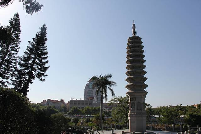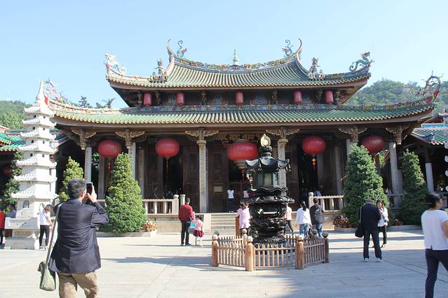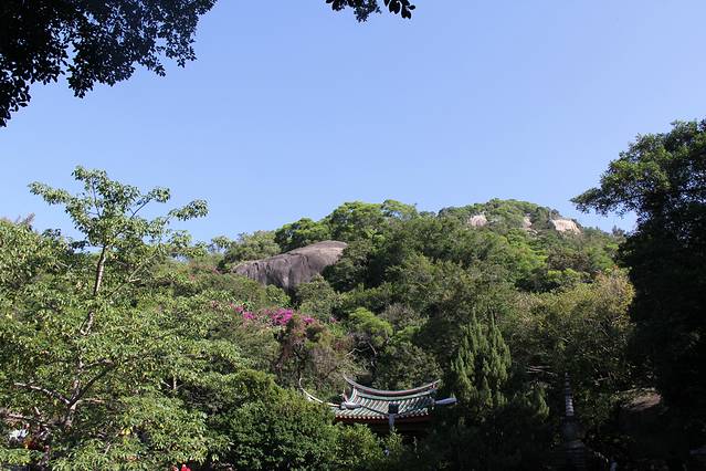 早餐后来到公交站等候公交去南普陀、厦大。公交站周边会有热心的出租司机告诉你怎么乘车,曾厝垵到南普陀寺公交车一元, 5站在厦大西村下车再往南走几分钟就到。南普陀寺位于福建省厦门市东南五老峰下,面临碧澄海港,该寺占地面积25.8万平方米,建筑面积2.1270万平方米。始建于唐朝末年,称为泗洲寺,宋治平年间改名为普照寺,明朝初年,寺院荒芜,直到清朝康熙年间才得到重建。因其供奉观世音菩萨,与浙江普陀山观音道场类似(北普陀寺),又在普陀山以南而得名"南普陀寺",为闽南佛教胜地之一。 寺内明万历年间血书《妙法莲华经》和何朝宗名作白瓷观音等最为名贵。南普随寺中轴线上主要建筑有天王殿、大雄宝殿、大悲殿、藏经阁等。两旁有钟鼓楼、禅堂、客堂、库房,另有闽南佛学院,佛教养正院,寺前有放生池,寺后近年新建"太虚大师纪念塔"。整座寺院气势宏伟,错落有序。南普陀寺为汉族地区佛教全国重点寺院 、厦门八大风景区之一 。我们来得早人还不多 (昨天是观音娘娘的生日,这里来了上万人,那是多么宏大的场景),但人潮已经熙熙攘攘了。南普陀香火旺盛不收门票,寺前有免费发放的香,在指定的地方供信徒焚香敬拜。大殿里、佛像前许多信众不分男女老幼都在虔诚的叩拜,并供上自己带来的供品,还有许多俗家弟子来到佛学院聆听大师宣讲佛经芸芸众生。这一点就很好,寺庙本该如此,是天下苍生祈福还愿的地方,不像有些寺院商业气息浓重,有辱佛家清净。