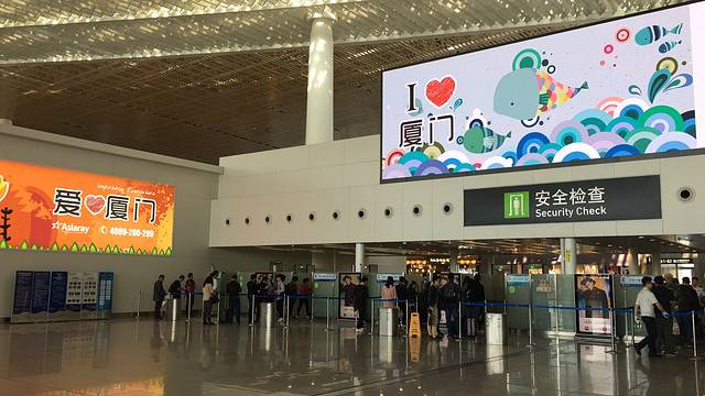 今天该回家了,吃了早餐把房卡放在前台就走了。我们来到曾厝垵公交站,乘坐8:30分的机场大巴于9:10分来到高崎机场。由于飞机是10:55分的,寄存行李以后就再机场逛逛。高崎机场大厅内根据厦门历史设置了三处供游人拍照的地方,最人性化的是一处以鼓浪屿照片为背景,放置一个花架、一盆兰花和板凳,游人微信扫码自动拍照然后上传手机,P成黑白照很有年代感甚是好玩,其他两处仅供拍照使用。回程的路没有来时顺利,10:20开始登机,由于空中管制 ,我们在地面上吃了午餐13点才起飞,整整晚点两个多小时,等回到咸阳国际机场已经下午四点多了,真真是起了个大早赶了个晚集。好在乘坐17点的机场大巴没赶上西安的晚高峰,下车乘公交18:40分安全到家。回顾此次旅行收获颇多,也留下一些遗憾,由于时间匆忙准备还是不充分。应该直飞福州(机票比飞厦门便宜)游玩两天,领略福州美景,再在乘坐高铁到厦门,其间还可以去永定土楼,行程9-10天为宜,最后从厦门返回。这仅仅是个人见解仅供参考!