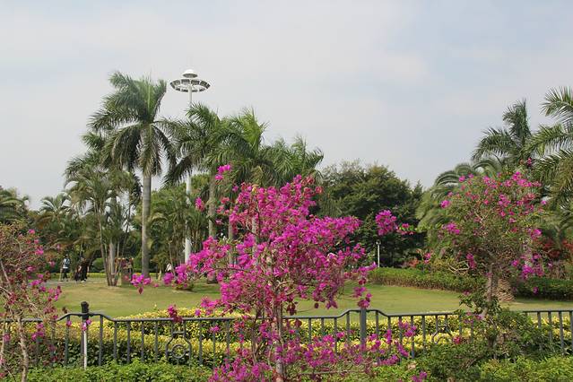歌曲倾国倾城中的一句雨过白鹭洲 ,让我们决定到实地看看,乘B3(5元/人公交投币1元会慢一点)公交来到公园,白鹭洲原是筼筜湖湖中台地。是厦门最大的全开放广场公园,毗邻市政府行政中心、滨北金融区及繁华老城区。良好的绿化景观与休闲文化设施,使其成为厦门城市的“磁心”和“绿肺”,更被厦门人亲切地称为“城市客厅”。公园内有一个白鹭女神雕塑,她是鹭岛的象征,是厦门城市雕塑中的精品。白鹭女神身姿优美、娴静地跪坐在一块巨岩上梳理长发,肩上还停着一只小白鹭,许多游人无不在此驻足拍照留念。今天是周六又是万圣节,许多家长带着身批斗篷孩童在草地上做亲子活动让人忍俊不禁。公园和其他的城市公园一样没有什么特别之处,一个小时就转完了。从公园里面出来,公交车四站就来到厦门植物园。