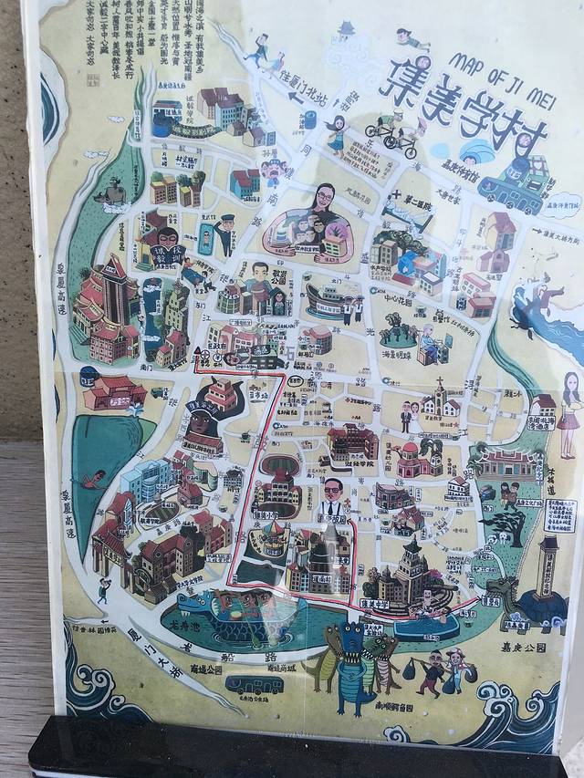 集美学村是集美各类学校及各种文化机构的总称,位于厦门集美半岛坐落于集美村。它由著名爱国华侨领袖陈嘉庚先生于1913年始倾资创办,享誉海内外。学村总建筑面积达三千余亩,拥有在校师生十万余人,形成了由学前教育至小学初中高中、从本科教育到硕士博士教育的人才培养体系。原集美学村包括:厦门水产学院、集美航海学院、集美师范专科学校、福建体育学院、集美财经专科学校(现已全部并入集美大学),集美归国侨学生补习学校(华侨大学华文学院)、中国语言文化学校、集美中学、集美小学、集美幼儿园等学校,还包括福南大会堂、图书馆、体育馆、音乐厅、龙舟池、航海俱乐部等设施。 2016年9月,集美学村入选"首批中国20世纪建筑遗产"名录。顺着集美学村的街道走走停停,先后观看了集美大学的旧址、集美幼儿园、小学、中学,陈先生纪念馆、陈先生故居、集美邮政所、、螯园等地,这些学校是百年前陈嘉庚先生为家乡捐建的,倾注了他的心血,非常美丽漂亮,这也是我见过的最漂亮的幼儿园、小学和中学,感觉能在这上学都是一件开心和幸福的事情,当我把照片发给孩子看时,孩子说要是在这么漂亮的学校读书她会更加用功学习的。陈先生不但修了学校,还挖了龙舟池和游泳池供村民和学生强身健体娱乐使用。由于时间充足,我们在集美慢慢的游玩了一天,走下来是有点累,建议大家扫一辆共享单车边骑边看,这样会很轻松,因为集美学村实在是太大了。集美新校区没什么新意,就没进去看看 。四点半乘公交车从集美来到厦禾路饭店等待舅舅一家的到来。把昨天收集的菜名在酒店大堂经理的帮助下,点了聚餐时的菜品,亲人相聚心情愉悦没有控制住,多喝了两杯导致晚上行程取消。